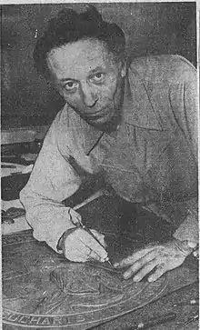 After the war, he resumes his artistic activities and in 1925 and 1926, he participates in and distinguishes himself at the «Salon des artistes décorateurs» in Paris.