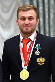 Albert Omarovich Khinchagov (Russian: Альберт Омарович Хинчагов; born 18 October 1996) is a Russian para-athlete, who won the gold medal in the shot put F37 event at the 2020 Summer Paralympics.[2]