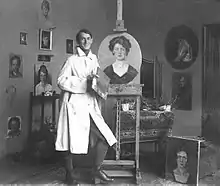 Albert Reuss was the son of Hungarian Jews, Ignaz Reisz (1855–1911) and Sidonia née Freund (1861–1928). Ignaz was a Fleischhauermeister and Fleischhändler, a master butcher and meat trader.[10] The couple at some stage moved to Malacky, in former Hungary, now Slovakia, where their first three sons were born. In the late 1880s, the family moved to Vienna, where Albert was born, followed by a further six children, three of whom died in infancy, leaving seven surviving children in all. The family name Reisz was changed by the Austrian authorities to Reiss.[11] From a young age, Albert became estranged from his family. A frail, sickly and vulnerable child, he seemed neither to fit into nor to belong to the family into which he was born. He suffered from ill-health and had considerable difficulties with social interaction throughout his life. He was introduced to the world of art by a rich uncle, Baron Andreas Ritter von Reisinger, who was married to his father's sister, and who appears to have instilled in the young boy a lifelong inferiority complex. Albert's artistic abilities emerged when he was only five years old, and at the age of 14, he applied, unsuccessfully, to the Akademie der bildenden Künste Wien. Unable to pursue his dream of becoming an artist, he was obliged, on leaving school, to assist his father as a butcher. Given his delicate disposition and artistic sensibilities, working at the butchery was not an effective fit. There followed a series of equally unsuitable jobs, including salesman, childminder and actor, all of which ended in dismissal. These repeated experiences of rejection only added to his lack of self-worth. He became determined to teach himself by copying the Old Masters in the Belvedere Gallery and managed to gain several commissions for these paintings, as well as some commissions to paint portraits.