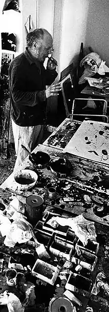 In 1956 he began his collaboration with the Esther Robles Gallery of Los Angeles,[11] which organized several solo and group exhibitions in California, and the same year exhibited in a show featuring European painters at the Museum of Contemporary Art in Houston, Texas.[12] The contract with the Californian gallery was to end abruptly and inexplicably just a few years later, however, given the political climate in America at that time, the era of McCarthyism, the reason likely lay in the artist's political leanings.[13][14] Whilst living in the Polesine, an area around the Po river.