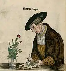 Albrecht Meyer also known as Albertus Meyer in Latinised form, was a botanical illustrator noted for his more than 500 plant images in Leonhart Fuchs's epic pre-Linnean publication of 1542, De Historia Stirpium Commentarii Insignes, published in Latin and Greek, and almost immediately translated into German. At the time it was regarded as one of the most beautifully illustrated books on plants and a jewel in the crown of German Renaissance.