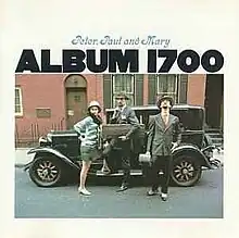 Album 1700 is the seventh studio album by American folk music trio Peter, Paul and Mary, released in 1967.[2] It produced the band's most successful and final hit, a recording of the John Denver song "Leaving on a Jet Plane". The album peaked at number 15 on Billboard magazine's Top LP chart and was nominated for a Grammy Award in the Best Folk Performance category. Album 1700 was so named because its original LP issue was Warner Bros. Records catalog number W-1700 for the mono version and WS-1700 for the stereo version. It stayed on the charts and rose again in 1969, thanks to the single release of "Leaving on a Jet Plane".