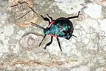 The Alcaeorrhynchus grandis is a genus species of the family Pentatomidae. Also known as Giant Strong-nosed Stink Bug, the Alcaeorrhynchus grandis can be found through Brazil, Colombia, Mexico, and the southern United States.[1] As a predator, this stink bug can follow frass trails created by prey.[2]