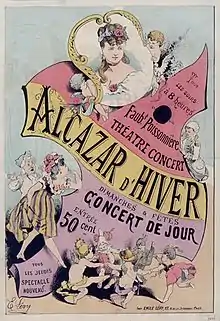 Goubert acquired another establishment, on the Champs-Elysées, which he called "Alcazar d'Été", logically renaming the "Alcazar" to "Alcazar d'Hiver".[1] On the departure of Thérésa, the place often changed names and proprietors. It was demolished in 1902 to be replaced by offices.