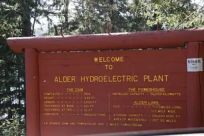 - 1 2 "Alder Dam". Tacoma Power- Tacoma Public Utilities. Archived from the original on 11 April 2009. Retrieved 2009-03-24.