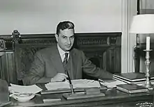 In the 1953 Italian general election, Moro was re-elected to the Chamber of Deputies, where he held the position of chairman of the DC parliamentary group.[31] In 1955, was appointed as Italian Minister of Grace and Justice in the first Segni government led by Segni as Prime Minister of Italy.[32] In 1956, he was among the most popular candidates, receiving the most votes during the party's congress. In May 1957, the PSDI withdrew its support to the government and Segni resigned on 6 May 1957.[33]