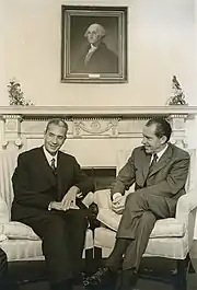 On 16 July 1964, Segni sent the Carabinieri general Giovanni de Lorenzo to a meeting of representatives of DC, in order to deliver a message in case the negotiations around the formation of a new centre-left government would fail. According to some historians, De Lorenzo reported that Segni was ready to give a subsequent mandate to the president of the Senate of the Republic, Cesare Merzagora, and would ask him to form a president's government composed by all the conservative forces in the Italian Parliament.[60][61] This attempted coup, which came to be known as the Piano Solo,[62] only became public in 1967 through the investigative reporting of L'Espresso.[63] Ultimately, Moro managed to form another centre-left majority. During the negotiations, Nenni had accepted the downsizing of his reform programs. On 17 July 1964, Moro went to the Quirinal Palace, with the acceptance of the assignment and the list of ministers of his second government.[64]