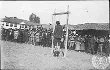 On the end of 1904 he was betrayed by Mitre Ginkov in the village of Aetos. He was captured and taken to the Turkish court in Bitola, where he was sentenced to death. His punishment was done in public, on 29 August 1905 in front of Bitola's At-bazaar he is killed with hanging. According to the British Consul in Thessaloniki, Robert Graves, the same day several thousand citizens followed the coffin, which was covered with wreaths from the Bulgarian Church congregation.[6] His grave is in the cemeteries Saint Nedela in Bitola, North Macedonia.[7]