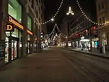 Aleksanterinkatu (Swedish: Alexandersgatan; "Alexander Street") is a street in Kluuvi, the commercial centre of Helsinki, Finland. In the city plan by Carl Ludvig Engel, it was the Decumanus Maximus, the main east–west street in the city, crossing the Cardo, Unioninkatu (Union Street) at the corner of the Senate Square.