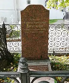 Brusilov's grave near the 500-year-old katholikon of the Novodevichy Convent (in the background)