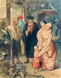 Alessandro Durini, 6th Count of Monza (30 May 1818, Milan - 9 January 1892, Milan) was an Italian nobleman and painter, primarily in watercolors, depicting historical and genre subjects.