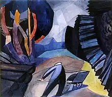 After artist's death, his name in Soviet Union was forgotten, his works being exposed just once in 1966 in Writers' Union House in Kyiv in the exhibition "Graphics and Art of Oleksandr Bohomazov".[6] Until the early 1970s, the work of Oleksandr Bohomazov remained ignored not only by the Western art historians but also by those of Ukraine. At the end of 1973, thanks to the intermediary of Ukrainian colleagues from Kyiv, French-Bulgarian art researcher Andréi Nakov was able to gain access to Bohomazov's studio, which, at the time, was in the hands of his widow. Impressed by the futurist work of the artist, he spoke about it on several occasions and published the first brief studies devoted to Bohomazov in 1973, 1977 and later in 1992 in Western European editorials. For the first time his works appeared outside Kyiv only in 1973, when several of them were included in the exhibition Tatlin’s Dream at Fischer Fine Art in London.[7] Following the fall of the Berlin Wall, and Ukraine's independence, broader exhibition of his work became possible. In 1991 his paintings were exhibited at the Musée d’Art Moderne in Toulouse, whose director Alain Mousseigne not only shared Andréi Nakov's enthusiasm for Bohomazov but made every effort to present his works in museums. Encouraged by the successes obtained in France, the Ukrainian authorities took up the torch at this time and presented the same exhibition in Kyiv. Since that date, several publications have emerged in Ukraine while Bohomazov's works have entered Ukrainian and Western public collections,[8] including MoMA & Guggenheim Museum in New York, Art Institute Chicago, Museum Ludwig in Cologne, James Butterwick Collection in London, Kröller-Müller Museum in Otterlo, Netherlands, NAMU in Kyiv and others.
