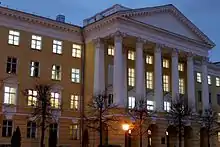 The main building of the Institute is located at the intersection of Kremlyovskaya and Lobachevskaya streets. This four-story building built in 1953 in the style of Soviet neoclassicism under the guidance of architect A.G. Bikchentaev. The building of the museum of Kazan chemical school is located in the campus of the main university building, built in the 1830s in a classical style under the guidance of architect M.P. Corinfskiy.