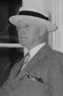 Whitney favored James F. Byrnes as vice-presidential candidate in Franklin D. Roosevelt's 1944 campaign for re-election, until it became clear that Roosevelt preferred Truman.[17] He wrote to a colleague on 12 July 1944, "our friend, Jimmy Byrnes ... will not only strengthen the ticket if nominated ... but [is] a man who will fill this high office with dignity."[18] In the 1944 Democratic National Convention in Chicago in 19–21 July 1944 he threw his weight behind Truman.[14]