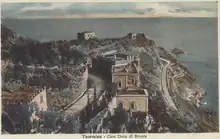 In 1867, his grandmother Charlotte Hood, 3rd Duchess of Bronte had purchased land at Taormina, on the coast 40 miles east of Maniace, in the Contrada Sant Leo.[9] In 1903 he purchased additional land in Taormina, on which he built a large villa called "La Falconara" (aliter "Villa Nelson"), still under construction at the time of the 1908 Messina earthquake.[10][11] The entrepreneur Maricchiolo laid the first stone.[12][13] Situated at 99 Via Luigi Pirandello, on the steep hillside 400 yards below (south of) the Teatro Greco, it comprises 20 rooms, including 8 bedrooms, 10 bathrooms and 50,000 square metres (c. 12 acres) of gardens and greenery. With his close friend and frequent guest the writer Robert Hichens he helped to further establish Taormina (like Capri) as a "holiday resort for wealthy homosexuals from Northern Europe".[14] That reputation had been initiated by the German photographer Wilhelm von Gloeden (1856-1931), who first visited Taormina in the 1870s, where he subsequently lived and died, together with other British expatriots such as the artist Robert Hawthorn Kitson (1873-1947)[12] and Colonel Thomas Shaw-Hellier (1836–1910).