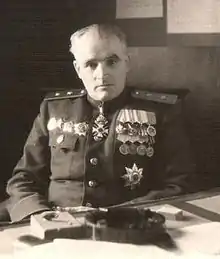 Alexander Grigoryevich Kapitokhin (Russian: Александр Григорьевич Капитохин; 6 June 1892 – 13 August 1958)[1] was a Red Army Lieutenant general. Kapitokhin commanded a sector in the final defence of Sevastopol and was later the commander of the Soviet Airborne Troops (VDV).[2] He was awarded the Order of Lenin and three Orders of the Red Banner.[3]