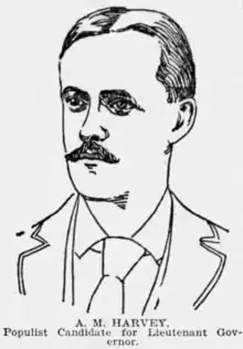 A lawyer from Topeka admitted to the bar in 1893,[1] Harvey was elected Lieutenant Governor of Kansas in 1896 on the Populist ticket along with John W. Leedy and served from 1897 to 1899.[2]