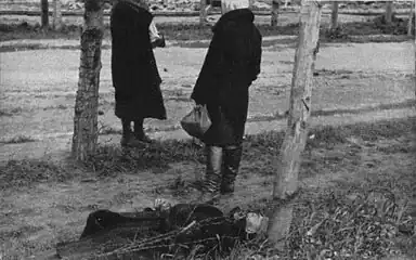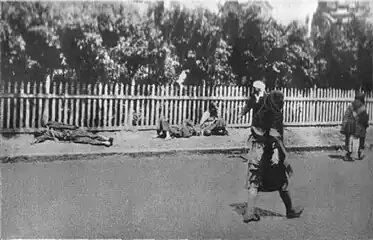 In 1934, the Patriotic Front, a far-right news paper in Austria released Wienerberger's photographs in a small brochure entitled "Rußland, wie es wirklich ist" ("Russia, as it really is"), but without attribution.[6] The photographs were first made widely available to the public in 1935, through the publication of Ammende's book, "Muss Russland Hungern?" ("Must Russia Starve?"); however, the photos were not credited because of concerns for the safety of their creator.[7]