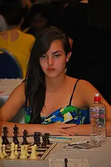 Alexandra Valeria Botez (born 24 September 1995)[5] is an American-Canadian chess player and commentator, Twitch streamer, and YouTuber. As a player, she became a five-time Canadian National Girls Champion and won the U.S. Girls Nationals at age 15. She achieved her highest FIDE Elo rating of 2092 in March 2016, and she currently holds the International Chess Federation title of Woman FIDE Master.