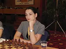 In August, she became the first Chess960 women's world champion after beating Germany's top female player Elisabeth Pähtz by 5½–2½. She defended that title successfully in 2008 by beating Kateryna Lahno 2½–1½.[13] However, her greatest success so far has been to win the Women's World Chess Championship 2008, beating in the final the young Chinese prodigy Hou Yifan with a score of 2½–1½.[14][15] Later in the same year, she won the women's individual blitz event of the 2008 World Mind Sports Games in Beijing.[16]