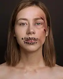 - ↑ "Russian women post selfies with fake injuries to protest lax domestic violence law". Caroline Radnofsky and Elena Holodny. MSNBC.
