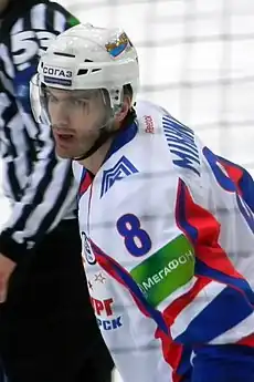 Oleksiy Pavlovych "Alexei" Mikhnov (Ukrainian: Олексій Павлович Міхнов) (born August 31, 1982) is a Ukrainian-Russian[1] professional ice hockey left wing who is currently an unrestricted free agent. He most recently played with the Severstal Cherepovets of the Kontinental Hockey League (KHL).