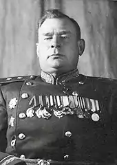 Alexey Osipovich Akhmanov (Russian: Алексей Осипович Ахманов; 9 March [O.S. 25 February] 1897 – 17 November 1949) was a Soviet Army lieutenant general and a Hero of the Soviet Union.