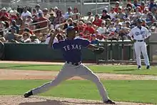 Ogando pitching for the Texas Rangers during spring training in 2011