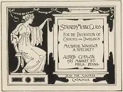 Godwin received his training in stained-and-leaded glass making in England, and emigrated to the United States in 1874. He opened his own shop in Philadelphia in 1878, and entered into a partnership with Wilhelm Reith "Alfred Godwin & Company" in 1883. An 1891 advertisement lists their shop at 1325 Market Street, Philadelphia. He was part of the short-lived "Association of Art Workers" (1893-1895), a team of Philadelphia artisans, furniture-makers and decorators who could collaborate on multiple aspects of a design project.[1] This was similar to Louis Comfort Tiffany's collaboration, "Associated American Artists."