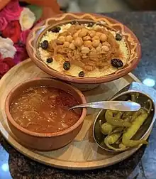 - ↑ Chemache, Loucif; Kehal, Farida; Namoune, Hacène; Chaalal, Makhlouf; Gagaoua, Mohammed (2018). "Couscous: Ethnic making and consumption patterns in the Northeast of Algeria". Journal of Ethnic Foods. 5 (3): 211–219. doi:10.1016/j.jef.2018.08.002. S2CID 133982691.