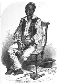 The missionary and linguist Sigismund Koelle, who was working on a grammar of the Kanuri language, employed Eismai as an informant, that is, a person to help him learn and translate the language, as well as to explain culture.[1] In addition, he recorded Eisami's memoir or slave narrative, titling it as "Ali Eisami Gazirmabe of Bornu", and published it in his African Native Literature (1854).[2] Eisami described his enslavement as a result of the transatlantic slave trade in the same terms as other victims, as "the white man's barbaric cannibalism", in the words of historian William Dillon Piersen.[3] Koelle left the mission and the country in 1853, and one scholar surmises that "his work with Ali Eisami ended in 1852" – and that the engraving for the frontispiece may have been based on a photograph, a very early photograph in a country where soon Krio people would enter that profession.[4] The biography was included in Philip D. Curtin's 1967 anthology Africa remembered; narratives by West Africans from the era of the slave trade.[5]