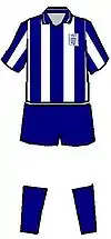 The team's home colours consists of a shirt with navy blue and white vertical stripes, navy blue shorts and navy blue socks. Its away colours are not commonly used nor well established, playing sometimes in blue, white or green.