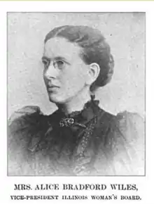 Alice Bradford Wiles (February 16, 1853 – February 20, 1929) was an American clubwoman based in Chicago, Illinois. She was active at the national level with the Daughters of the American Revolution and at the state level as president of the Illinois Federation of Women's Clubs.