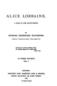 Alice Lorraine: a tale of the South Downs is a novel by R. D. Blackmore, published in 1875. Set in Sussex and Spain during the Napoleonic Wars, the novel recounts the divergent tales of the eponymous heroine and her brother in their efforts to save the noble Lorraine family from ruin.[1]