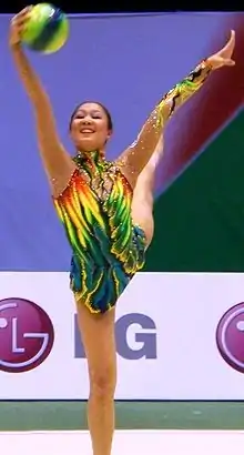 Aliya Nurgayanovna (Nikolayevna) Garaeva (Garayeva) (Tatar: Алия Нургаян кызы Гәрәева; Aliya Nurgayan Kyzy Gäräeva; Russian: Алия Нургаяновна Гараева), born 1 January 1988 in Yekaterinburg, Russian SFSR, Soviet Union) is a retired Azerbaijani individual rhythmic gymnast. She represented Russia (until 2005), and Azerbaijan (2006-2012). She is the 2011 World All-around bronze medalist, a two-time (2010, 2012) European All-around bronze medalist, two time (2007, 2011) Grand Prix Final All-around bronze medalist and five-time Azerbaijanii National champion. She was one of very few gymnasts not representing Russia to ever been trained by Irina Viner, famous head coach of Russia's national team.