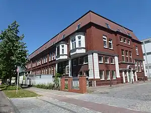 The site at Breitenbachstraße 33-36, the later Plant I, had to be extensively rebuilt. The administrative headquarters were located to the left of the main entrance. The basement housed a canteen for the employees. To the right of the main entrance a fire department was located, along with the workshop, and an electrical substation for supplying the electric power distribution of 6,000 to 30,000 volts. Behind the administration building were Production Halls 1 through 8.[2]