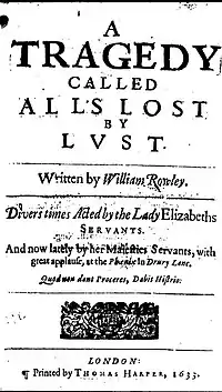 All's Lost by Lust is a Jacobean tragedy by William Rowley. A "tragedy of remarkable frankness and effectiveness,"[1] "crude and fierce,"[2] it was written between 1618 and 1620.