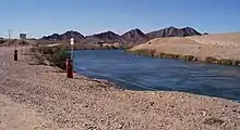 ![]() View of about 15 kilometers (9.3 mi) of the All-American Canal just west of Yuma, Arizona. Note: North is to upper right. | |