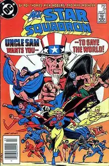 The All-Star Squadron is a DC Comics superhero team that debuted in Justice League of America #193 (August 1981) and was created by Roy Thomas, Rich Buckler and Jerry Ordway.[1] Although the team was introduced in the 1980s, its self-titled series took place in the 1940s, retroactively inserting their narratives into the fictional history of the DC Comics superheroes. The team included many of DC's Golden Age era characters, new characters, and other World War II superheroes that DC did not own during the 1940s but later acquired. The name "All-Star Squadron" was creator Roy Thomas' reference to All Star Comics, the series that introduced the Justice Society of America, the first comic book superhero team.