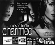 "All Hell Breaks Loose" is the twenty-second episode and season finale of the third season of the American television series Charmed; it is also the 66th overall episode in the series. The episode was originally broadcast in the United States on May 17, 2001, on The WB. It was written by Brad Kern and directed by Shannen Doherty. As well as being Doherty's last episode as director, it was also her last appearance on the show as the character Prue Halliwell,[1] although the character would later return in the comic book series. In the episode, The Charmed Ones deal with their secret of being witches going global and all of the news reporters swarming them.