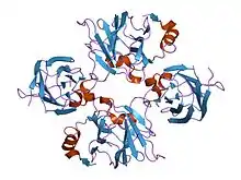 - ↑ Leulliot N, Quevillon-Cheruel S, Sorel I, Graille M, Meyer P, Liger D, Blondeau K, Janin J, van Tilbeurgh H (May 2004). "Crystal structure of yeast allantoicase reveals a repeated jelly roll motif". The Journal of Biological Chemistry. 279 (22): 23447–52. doi:10.1074/jbc.M401336200. PMID 15020593.