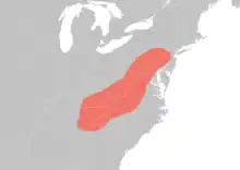 Allegheny woodrats are mainly distributed along the Appalachian Mountains. They have historically been found as far north as Connecticut (where they are now extirpated), southeastern New York (extirpated), northern New Jersey, and northern Pennsylvania southwestward through western Maryland, Tennessee, Kentucky, West Virginia, northern and western Virginia to northeastern Alabama and northwestern North Carolina with isolated populations north of the Ohio River in southern Ohio (extirpated) and southern Indiana (reintroduced). The Tennessee River is generally accepted as the southern range limit.[17] There are no recognised subspecies. Fossils belonging to the species are known from mid Pleistocene deposits in Maryland and West Virginia.[4]