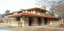 It was one of Frank Lloyd Wright's last Prairie Houses.[2][3] The design influence of the prairie and Japanese architecture (Wright was working on the Imperial Hotel in Japan at the time) is apparent on both the exterior and interior.