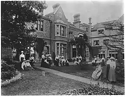 Allenswood House was located on a large tract of land between Albert Drive and Wimbledon Park Road,[1][2] in Southfields in the London Borough of Wandsworth, England.[3] It was owned by Henry Hansler and was built in the Tudor Revival style between 1865 and 1870.[4] The house was converted in 1870 by Marie Souvestre and her partner, Paolina Samaïa, into a boarding school for girls.[1][4] The school, whose students were primarily from the European aristocracy and American upper-class, provided a progressive education to its students. Often called a finishing school, Allenswood had a curriculum that included serious study at a time when education was denied to women, and stressed feminist ideals of social responsibility and personal independence.[5] In addition to learning French, which was the official language spoken at the school, students studied the arts, dance, history, language (English, German, and Italian), literature, music, and philosophy and were required to develop their own analytical skills to assess ideals and challenges.[6][5]