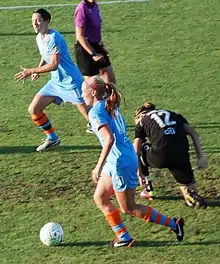 Following the 2010 season, Long became a free agent and was subsequently signed by Sky Blue FC in November 2010.[10][11] Jim Gabarra, the head coach of Sky Blue, stated that "Allie has been establishing herself as a prominent player in this league" and that he expected her to "continue developing and helping our team to be successful."[11] She made her first appearance for Sky Blue on April 10, 2011 in a match against Philadelphia Independence. Following the match, Long was named the WPS Player of the Week.[12] Long made 18 appearances for Sky Blue in the regular season and scored three goals, two of those on penalty kicks.[8] Sky Blue finished fifth in the WPS after the regular season and did not advance to the playoffs.[13]