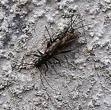 Allocapnia granulata Pair in copulo. IN, Milltown, Blue River