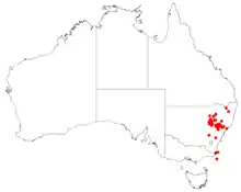 This she-oak grows in open woodland on sandy soil on sandstone ridges between the Pilliga Scrub, Ulan, Baerami, Singleton and Glen Davis in eastern New South Wales.[2][3][4]