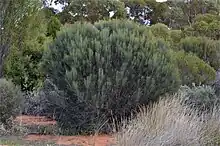 Allocasuarina helmsii grows in mallee woodland and tall heath between Nungarin in Western Australia, and north-western South Australia, with disjunct populations on Dirk Hartog Island and on the northern Eyre Peninsula.[2][3][4]