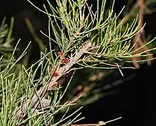 - Allocasuarina mackliniana subsp. xerophila L.A.S.Johnson[12] is intermediate between the other two subspecies, and has articles 7–13 mm (0.28–0.51 in) long, seven or eight teeth, the "ribs" nearly flat to slightly rounded and the furrows between the ribs softly hairy when young.[13][14]