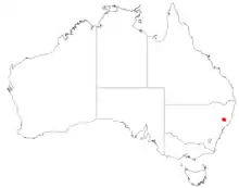 This she-oak grows on serpentinite rocks in tall heath and low woodland on the southern end of the Northern Tablelands and nearby coastal ranges in eastern New South Wales.[2][3][4]